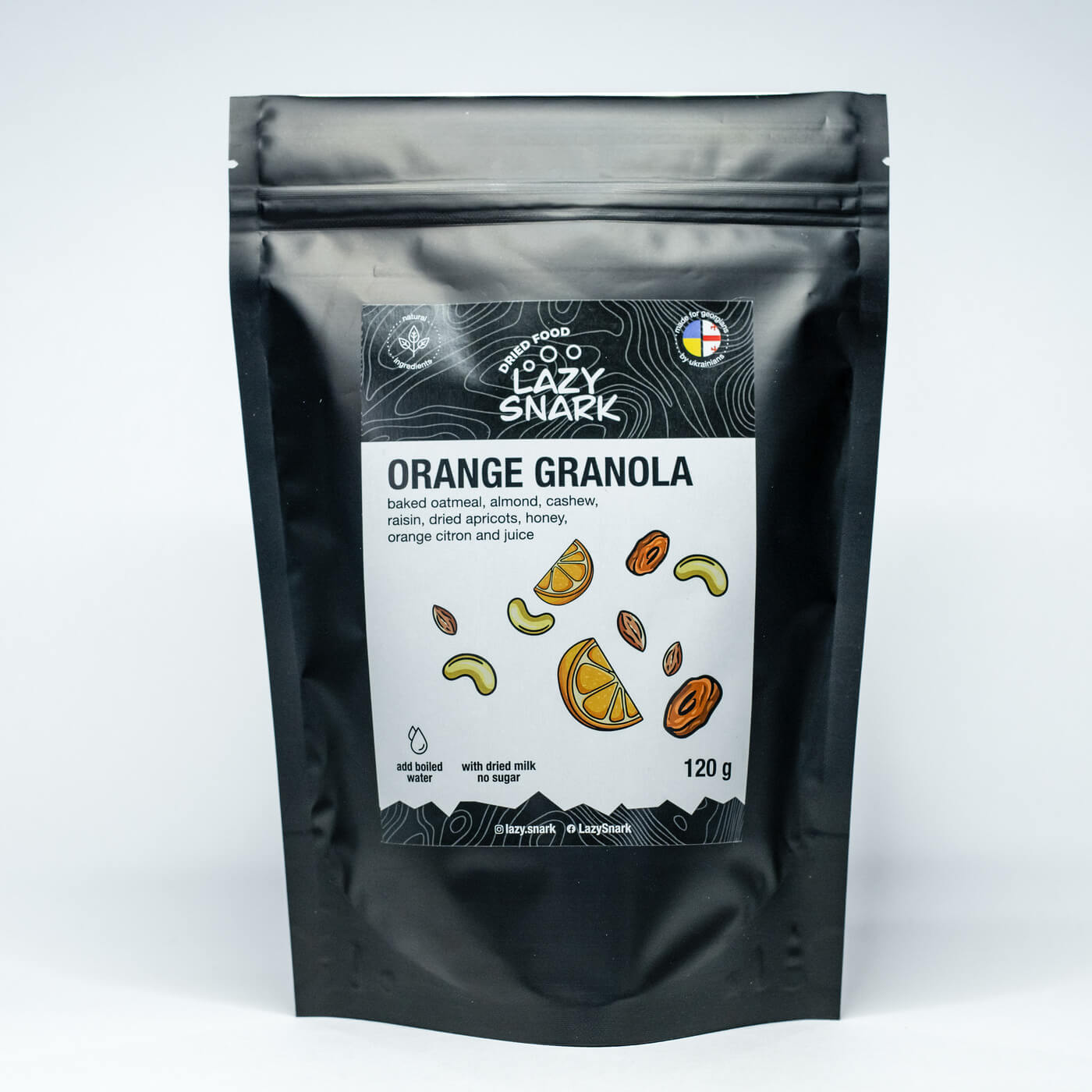 Ingredients: baked oatmeal, almond, cashew, raisin, dried apricots, honey, orange citron and juice, dried milk (20 grams)