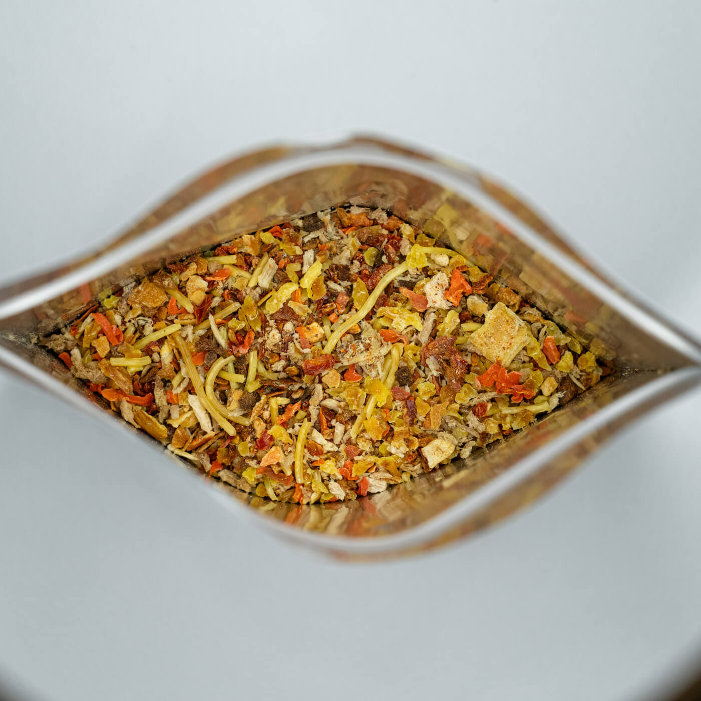 Packaging: aluminium doypack with zip lock. The packaging is designed to brew food inside.